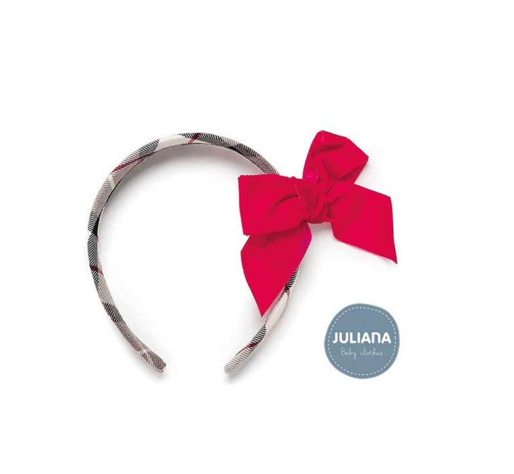 Cerchietto in fantasia tartan arricchito con fiocco in velluto rosso