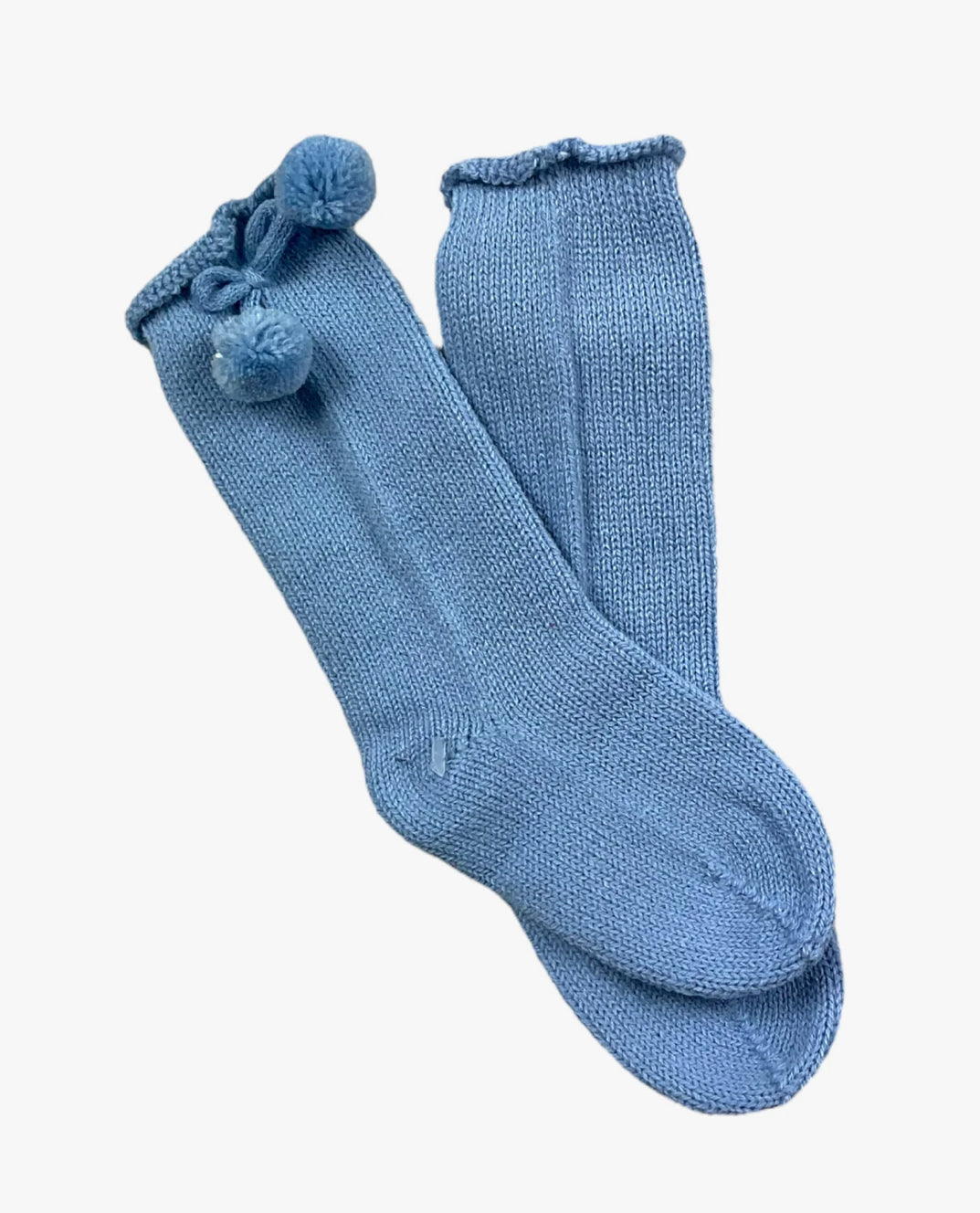 Calzino in lana rasata con pon pon, disponibile in cinque varianti di colore Bianco , Panna, Rosa Maquillaje, Cielo, Rosso.