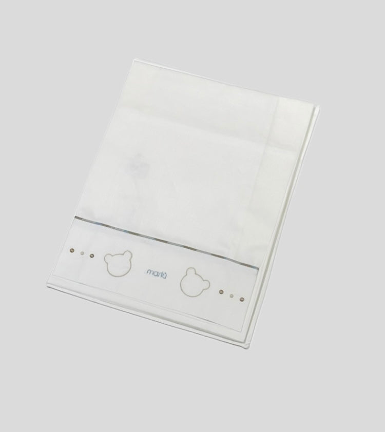 Set Lenzuola Marlù, neonato 100% puro cotone. Fondo Bianco con ricami in contrasto di colore.