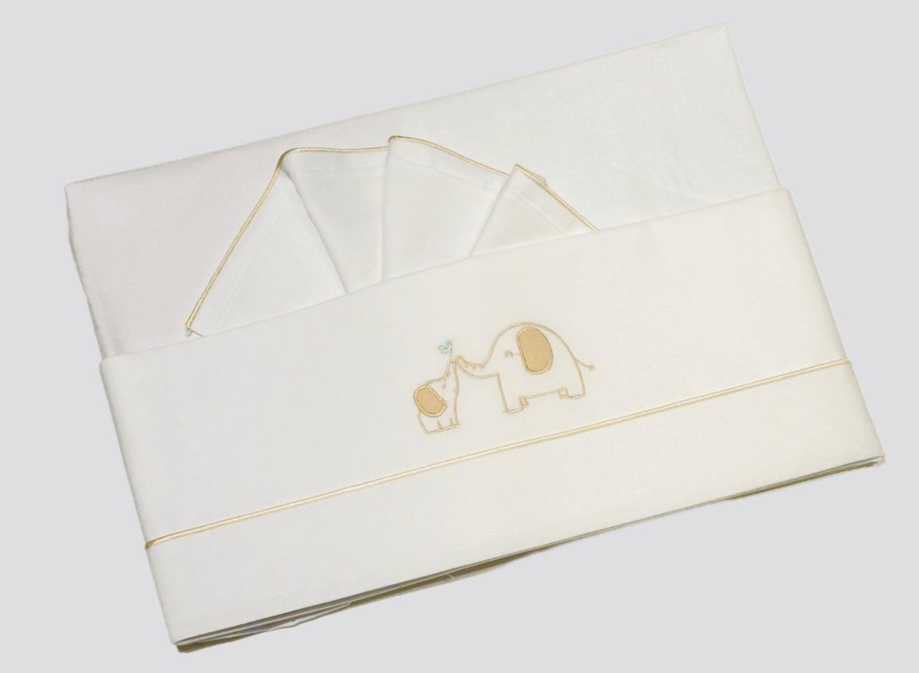 Set Lenzuolo Minibanda, fondo Bianco a fantasia e profili in contrasto di colore.