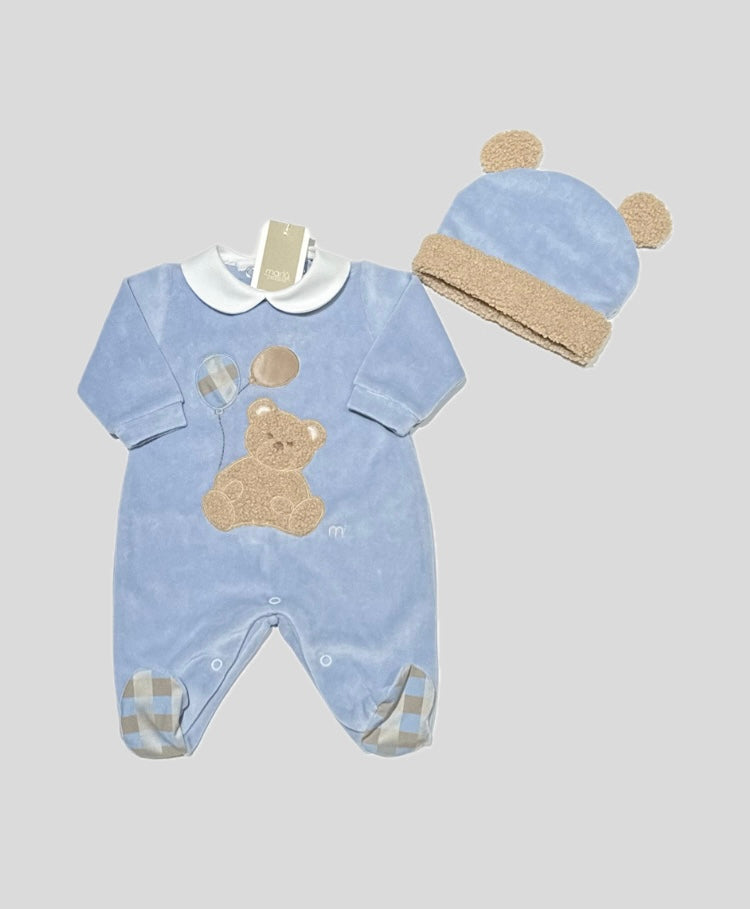 Set Nascita Marlù neonato, in ciniglia nei colori Cielo e Tabacco. La tutina é realizzata con colletto classico, comoda chiusura sul fondo e sul retro, fantasia orsetto in rilievo in tessuto Teddy, completa di cappellino in ciniglia con orecchie. Ideale per i periodi più freddi e per la sua uscita clinica. Possibile abbinare la copertina IN7081 e la bavetta IN70Bav.