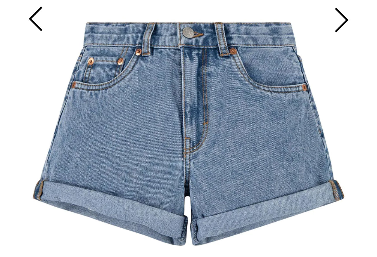 Short in denim lavaggio Chiaro, realizzato con elastici regolabili in vita, bottone e cerniera, tasche laterali e taschino sul retro, vestibilità regolare.