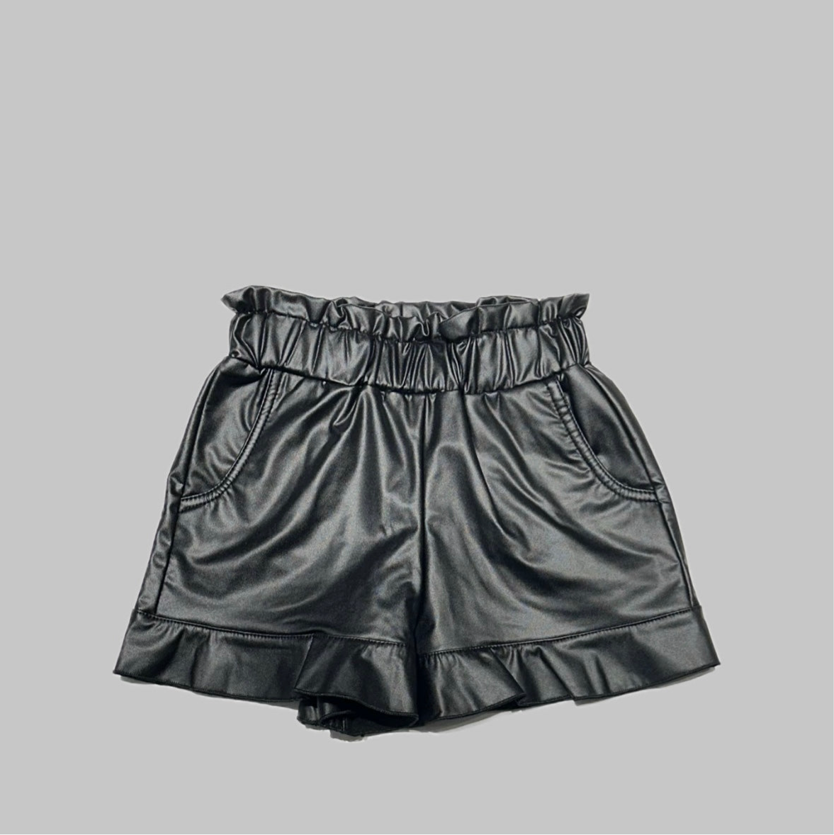 Pantaloncino in Ecopelle Sarabanda neonata/bambina, modello a caramella, fondo Nero.