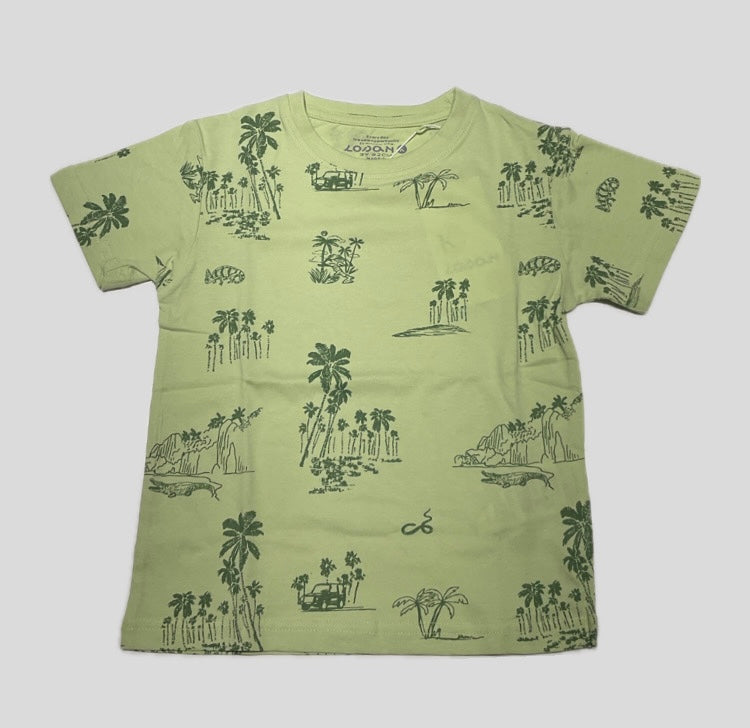T-shirt Losan in cotone bambino fondo Verde a fantasia in contrasto di colore vestibilità regolare.