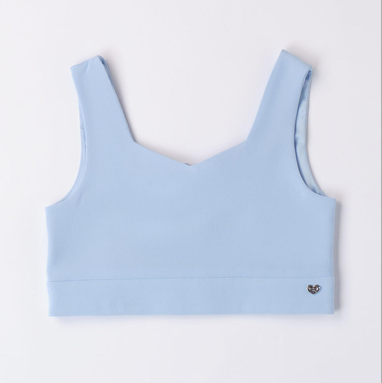 Crop top ragazza Sarabanda realizzato in tessuto crepe. Il modello ha apertura posteriore con zip e fa parte della collezione S Premium Sarabanda pensata per le cerimonie più formali delle ragazze.