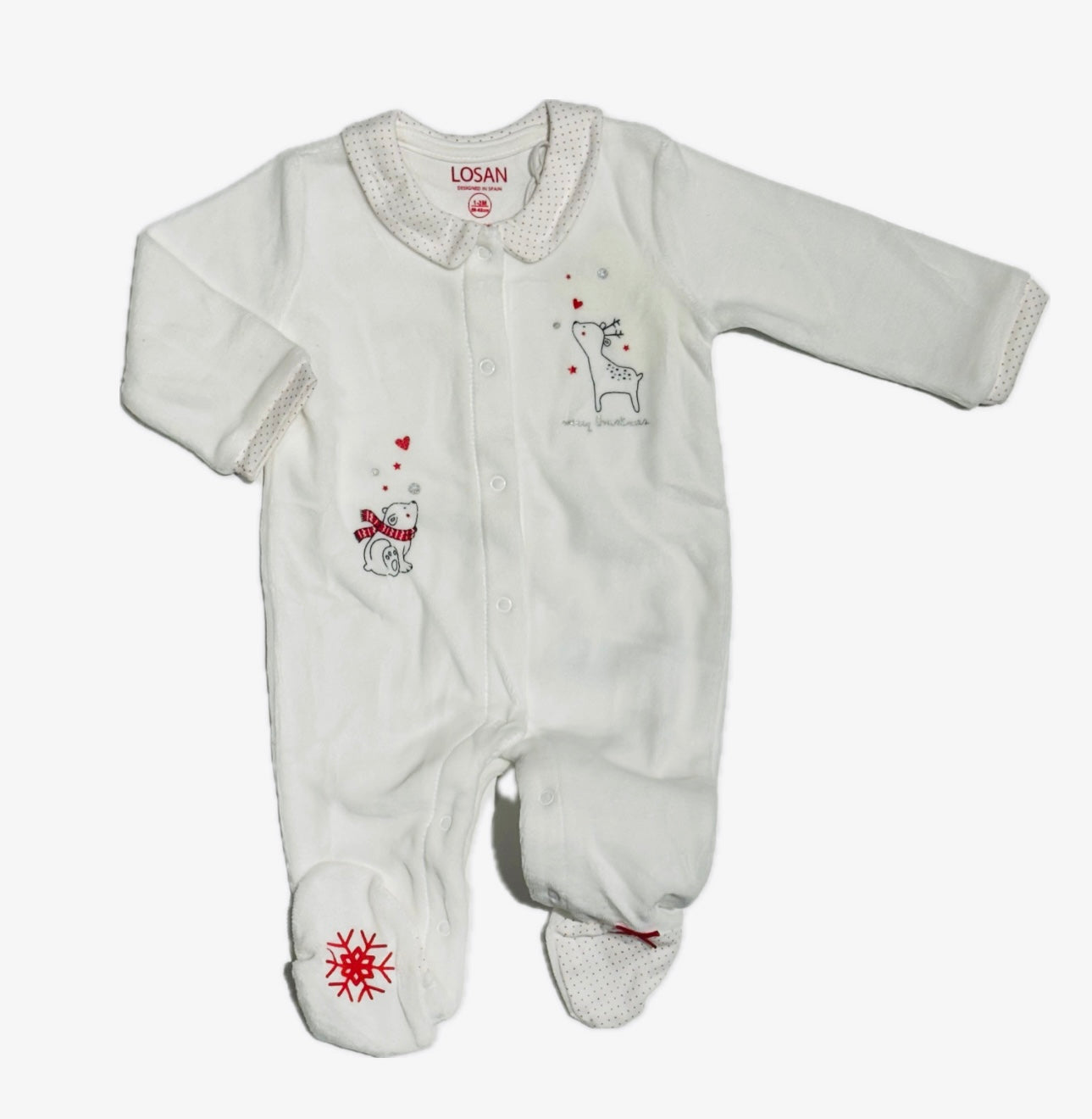 Tutina in ciniglia, fantasia natalizia centrale , completa di sacchetto adatto anche come idee regalo.