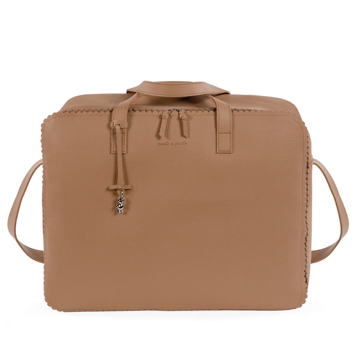 La valigetta per neonati Icon Caramel di Pasito a Pasito è la borsa perfetta per l’ospedale/clinica, un modello unico e alla moda appositamente progettato per te, il papà, e il bambino. È realizzato in ecopelle resistente e morbida. La sua forma rettangolare offre comfort per coprire tutte le tue esigenze (pigiama o accessori) durante il giorno del parto del bambino. È un design semplice, moderno e pratico che offre ampio spazio per trasportare molte cose ed ha un’apertura comoda per facilitare la ricerca di ciò che hai riposto. Viene fornito con una maniglia lunga da appendere sulla spalla e due maniglie corte per il trasporto a mano, se preferito. Finiture di alta qualità. La valigetta ospedaliera è dotata di fodera interna con elastici per mantenere i vestiti e si chiude in modo sicuro con una cerniera bidirezionale che consente di aprire completamente il coperchio. Realizzato con materiali di alta qualità, privi di coloranti azoici, ftalati e sostanze nocive per la salute. Inoltre, può essere lavato a mano o in lavatrice a temperature fino a 30º. I prodotti per bambini di Pasito a Pasito hanno un design molto diverso dagli altri. Le loro collezioni sono caratterizzate da un lavoro meticoloso, sempre progettato da un punto di vista pratico. Utilizzano materiali di alta qualità per enfatizzare l’eleganza e l’armonia in ciascuno dei loro pezzi. I nostri modelli sono esclusivi e hanno uno stile inconfondibile, progettato per le moderne mamme che hanno buon gusto e apprezzano i dettagli tanto quanto noi. Specifiche: Materiali: Ecopelle. Colore: Camel. Misure: 44X36X16 cm.