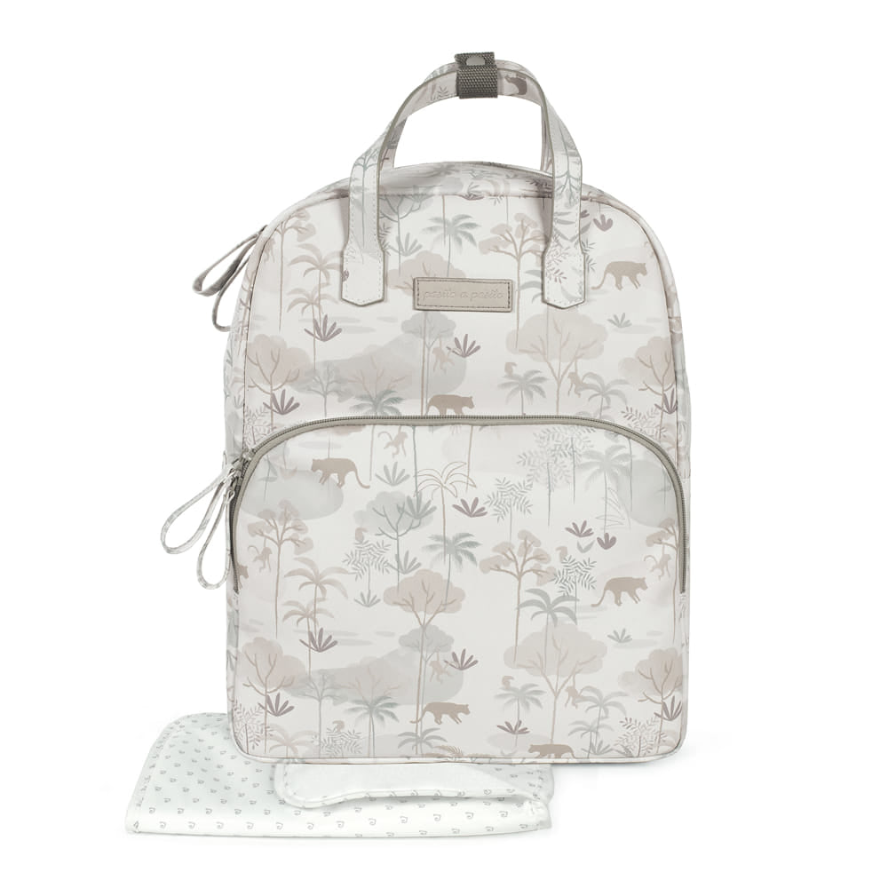 Zaino in similpelle beige Serengueti. Grande capacità di trasportare tutto ciò di cui tu e il tuo bambino avete bisogno. Tasche interne ed esterne per avere tutto a portata di mano e in ordine. Scomparto per laptop o tablet. Ha 2 grandi maniglie regolabili in modo da poterlo utilizzare appeso sul retro e altre due piccole maniglie in modo da poterlo appendere sul carrello del bambino. I materiali utilizzati sono esenti di coloranti azoici, ftalati e sostanze nocive alla salute. Dimensioni: 30X19X37 cm.